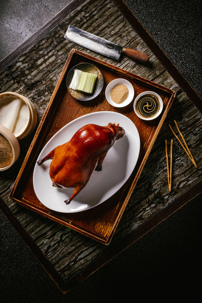 北京片皮鴨(蘋果木燒)需提前預訂,建議三至四位賓客享用。