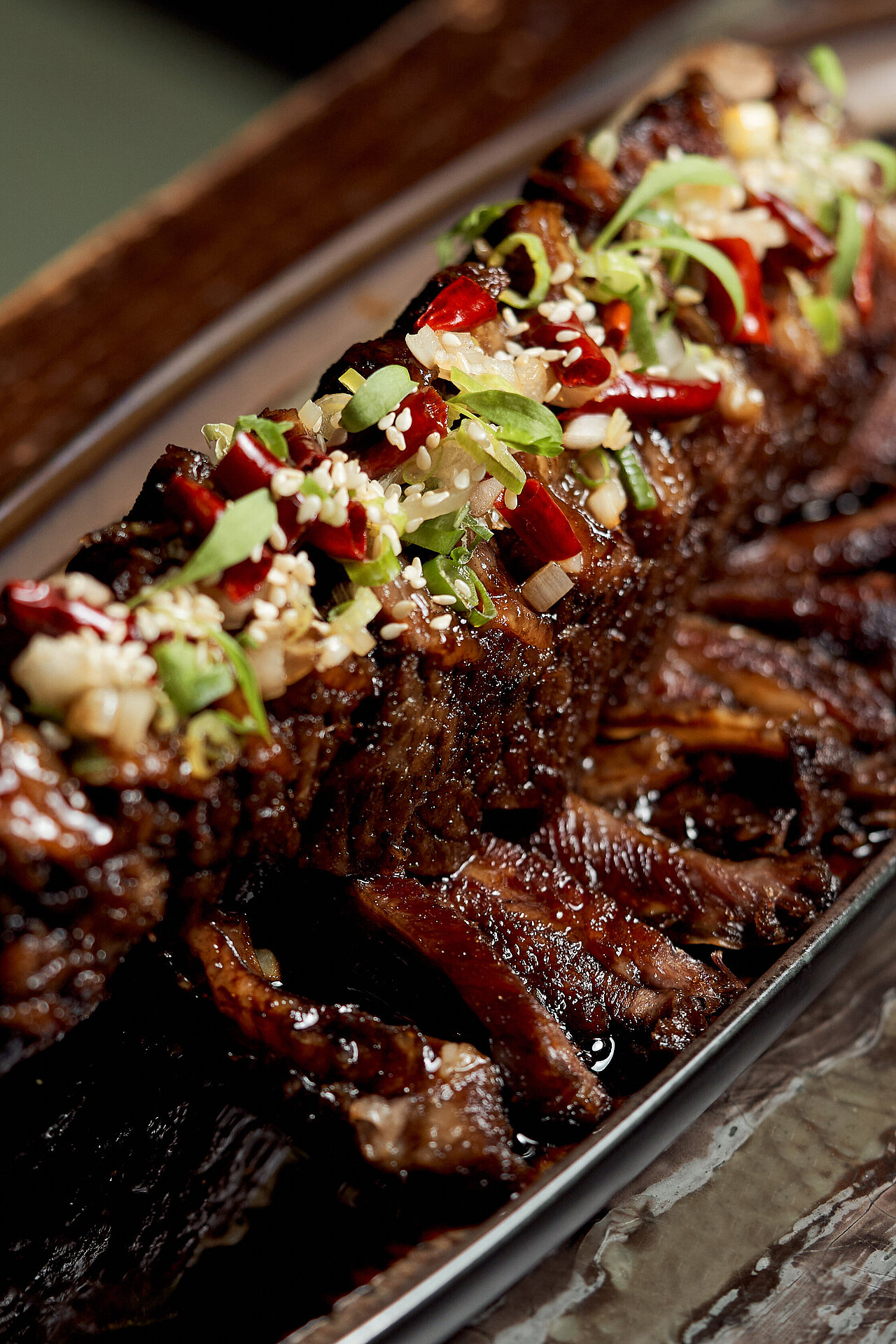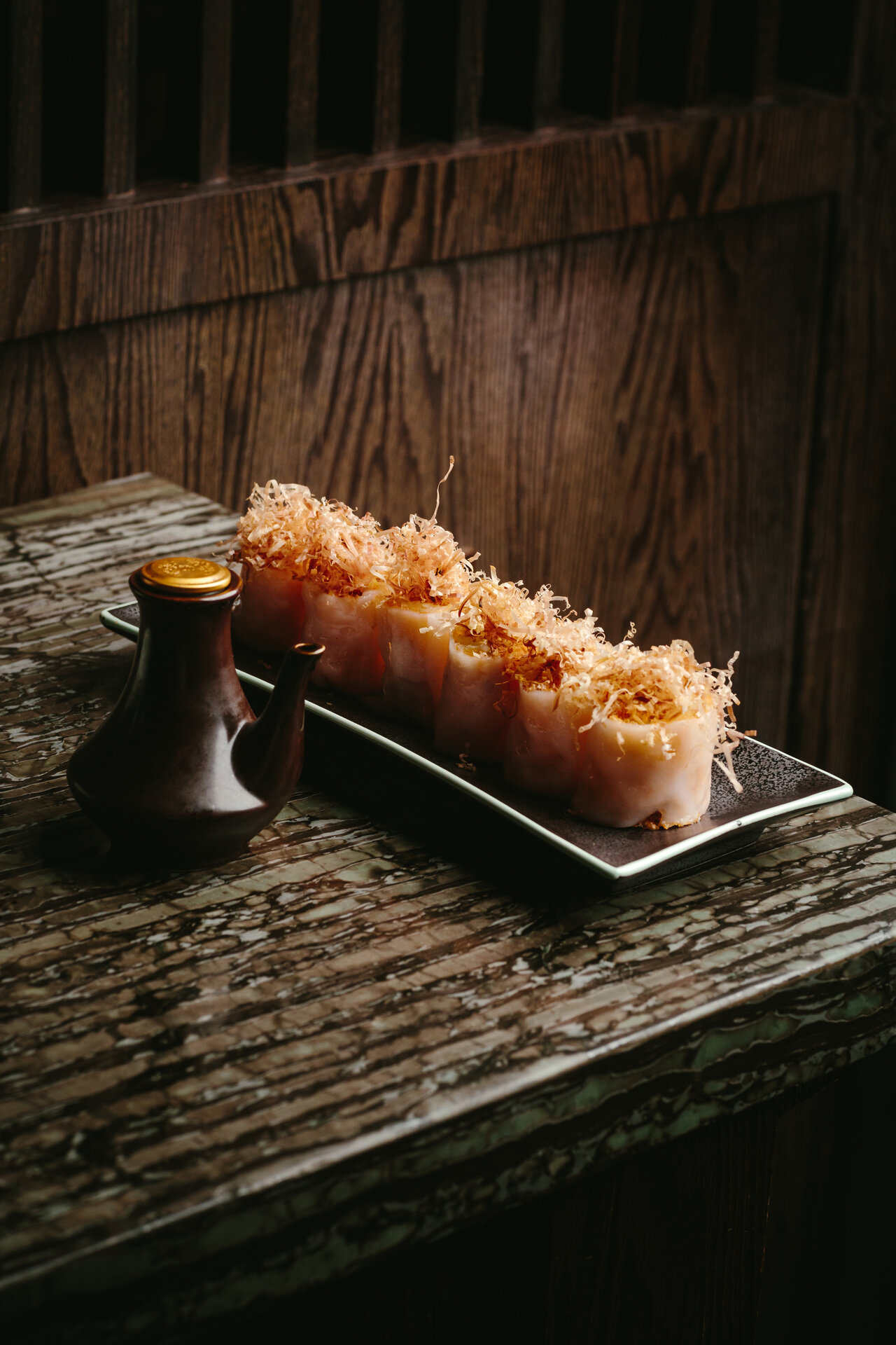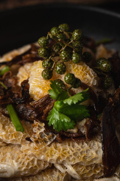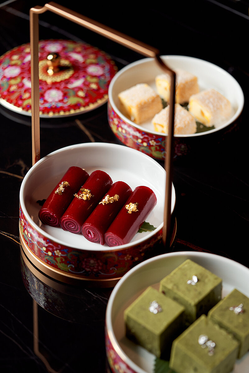 卅二公館的招牌北京片皮鴨(蘋果木燒)精心挑選四十二天飼養的香鴨,再由烹飪團隊獨創的方式製作,成功把所有肉汁鎖於其內,讓此成為真正的宮廷菜式。菜式將於賓客的餐桌旁奉上,配搭新鮮現蒸的餅皮、薄切青瓜、京蔥、蔗糖及自家製的海鮮醬。清爽多汁的青瓜,將與於你咬下香脆並帶煙燻味的鴨皮相輔相成,令整道菜式的味道昇華。