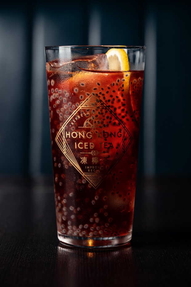香港冰茶受香港熱門飲品凍檸茶所啟發,受珍珠奶茶的口感所影響之下,以更健康的羅勒籽作替待。將龍舌蘭、利萊白利口酒(Lillet Blanc)、黑加侖子、茉莉花茶結合起來,為經典的風味帶來新的變奏。