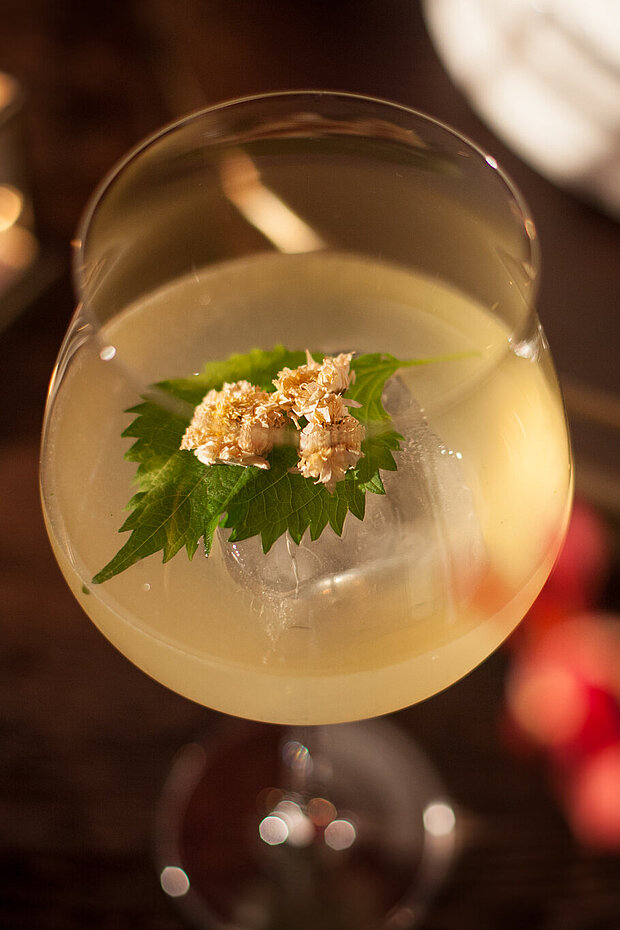 花見,是指觀賞櫻花盛開,是亞洲的一種習俗。此杯雞尾酒深受花節和此習俗所啟發。威士忌和氈酒,遇上梅酒、柚子、紫蘇、姜啤、菊花,便成為一款散發清幽花香的雞尾酒,並帶有一點梅子味作點䮕。